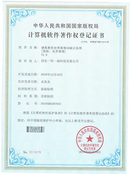 西安一筆一畫科技有限公司擁有《3C管理體系認(rèn)證》|《3A信用等級》|《展館雙甲資質(zhì)》《招投標(biāo)證件》|《展覽業(yè)10大影響力品牌》|《環(huán)藝雙甲資質(zhì)》|《禁毒教育拒毒心理測試系統(tǒng)軟著》|《飛奪瀘定橋歷史重現(xiàn)虛擬體驗(yàn)軟件軟著》|《禁毒教育世界毒情3D演示系統(tǒng)軟著》等等,是您可以信賴的展廳教育基地設(shè)計施工企業(yè)!